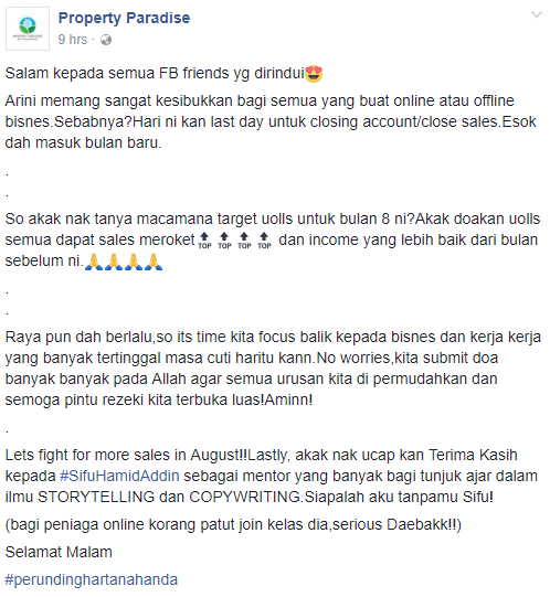Rahsia untuk menjual di FB Personal sebenarnya terletak kepada 'cerita' yang kita karang, yang kita tulis.